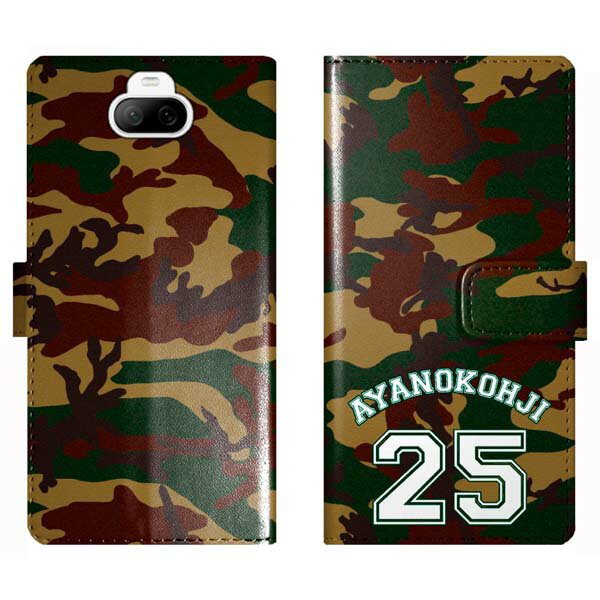 Xperia 8 SOV42 Xperia8 手帳型 迷彩 背番号 名入れ ケース カバー カモフラージュ ミリタリー スポーツ エクスペリア オーダーメイド オリジナル スマートフォンケース