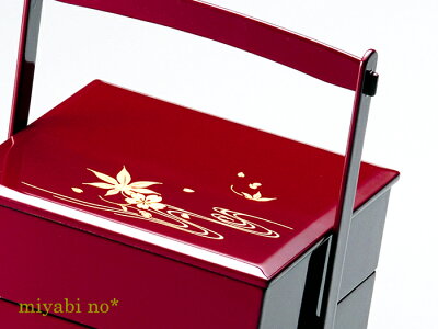 越前塗 雲錦流水55手提二段重 朱 19×17.3×20.7cm日本製 木製 ウレタン 漆塗り 5.5寸 2段重 重箱 ランチボックス オードブル