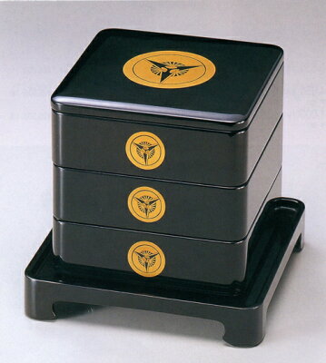 【送料無料】越前漆器 木製 6.5三段重箱 家紋入 黒内朱 001-1366(越前漆器 日本製 国産 おしゃれ(モダン) 運動会 迎春(お正月) お花見 行楽 弁当箱 塗)祝重箱 塗重箱 重箱