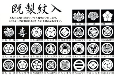 家紋によって別途費用が必要な場合もありますのでご確認ください。