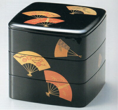 越前漆器 木製 6.5三段重箱 扇面松竹梅 黒内朱 (日本製 国産 運動会 迎春(お正月) お花見 行楽 弁当箱) 【送料無料】